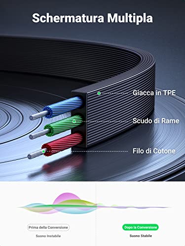 [ Perfetta Qualità del Suono ] Il connettore placcato in oro 24K e il filo di rame smaltato interno possono svolgere un ruolo di schermatura per garantire che la trasmissione del segnale del cavo audio sia più stabile per fornire un suono perfetto e chiaro.