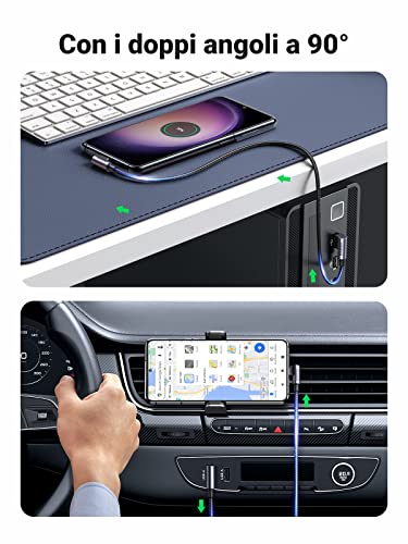 [Connettore a 90°] Adottiamo il design di connettore 90°, più ergonomico e maneggevole, non disturba le tue dita quando fai i giochi sul smartphone. Facile raggiungere i spazi ristretti, non è piegato durante la ricarica per proteggere i connettori e aumentare la durata.