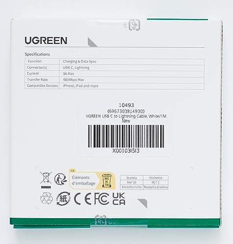[Certificato MFi & 100% Compatibile] UGREEN cavo lightning iphone ha superato il certificato MFi, viene perfettamente riconosciuto dall'iphone, 100% compatibile, nessun messaggio d'avviso sulla non originalità del cavo, protegge il dispositivo e la batteria dagli eventuali danni.