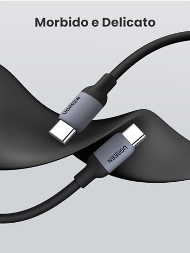 UGREEN Cavo USB C 60W PD 3.0 Silicone, Cavo Type C Ricarica Rapida 20V,3A Compatibile con iPhone 15 Plus Pro Max, MacBook, iPad Pro,Mini,Air, Galaxy S23 S22 S21, Tablet ecc Nero 1M