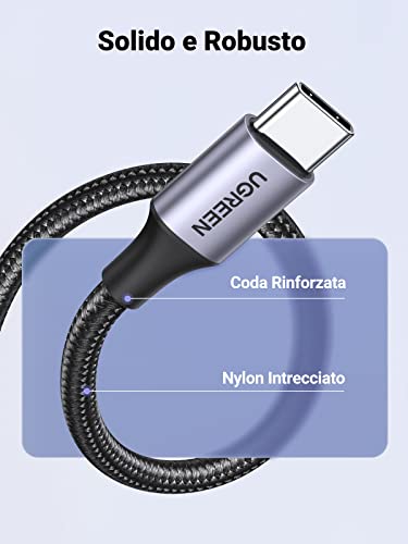 UGREEN Cavo USB Tipo C 2Pack Ricarica Rapida in Nylon, Cavo USB C USB A QC 3.0 Compatibile con iPhone 15 Plus Pro Max, Galaxy S23,S23+,S23 Ultra,S22,A53,A33, Readmi Note 11, ecc 1M