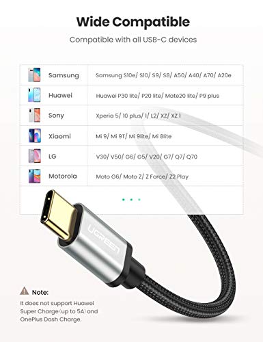 UGREEN 3A Cavo USB Tipo C Ricarica Rapida in Nylon, Cavo USB Type C Compatibile Galaxy A80 A70 A50 A8 A7 S10 S9, Huawei P30 Lite, P20 Lite, Xiaomi Redmi Note 7Mi 9,Mi A2,Mi 9T ECC.(2m)