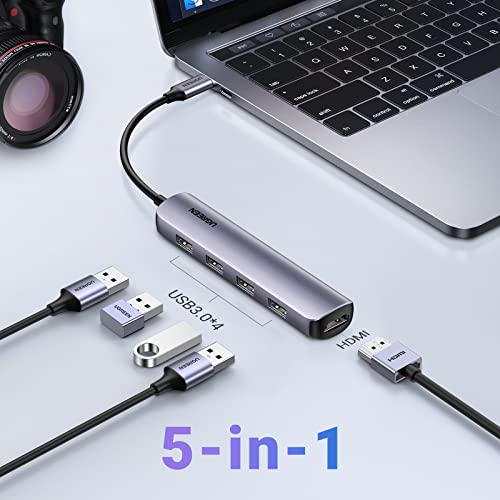 UGREEN Hub USB C HDMI 4K, 4 Porte USB 3.0, HDMI 4K@30Hz, in Alluminio, Corpo Sottile, Compatibile con MacBook Pro Air M2 M1, iPad Pro Air, iPhone 15 Plus Pro Max, Surface Pro 9, Chromebook
