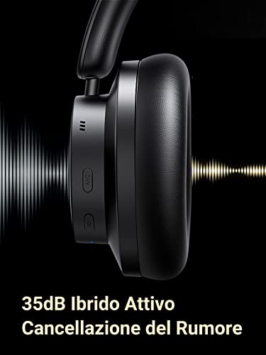 UGREEN HiTune Max 3 Cuffie Wireless, Cuffie Ibride con Cancellazione Attiva del Rumore da 60 Ore con Modalità Trasparenza, Audio Spaziale 3D, Unità Driver 40mm Riproduzione, Rilevamento Automatico