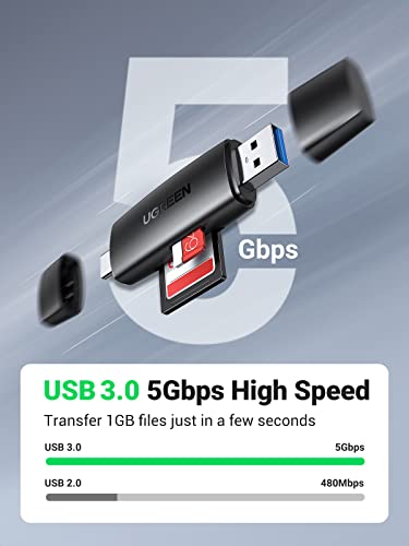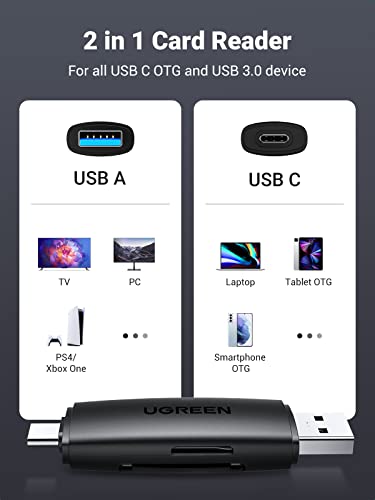UGREEN Lettore di Schede SD TF USB C Card Reader 2 in 1 USB 3.0 Compatible con Macbook Pro 2023 iPhone 15 Plus Pro Max Galaxy S23 S22 S21 Huawei P50 40 Mate 40 Xiaomi 13 Redmi Note 12