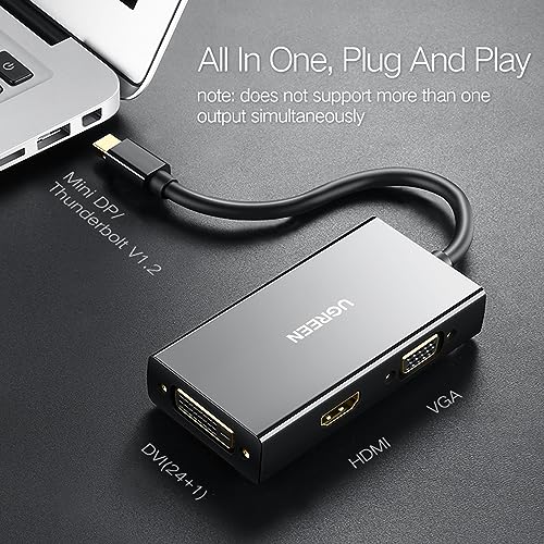 UGREEN Mini DisplayPort DP a HDMI DVI VGA Adattatore 3 in 1 Mini DP a HDMI DVI VGA, supporta Risoluzione 4K per HDMI, Thunderbolt compatibile con MacBook, Surface Pro, Chromebook etc (Nero)
