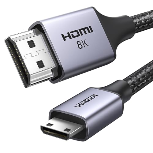 [ Cavo Mini HDMI a HDMI Bidirezionale ] UGREEN Cavo Adattatore Mini HDMI 2.1 trasforma facilmente la porta Mini HDMI del laptop, della videocamera, della fotocamera o anche del tablet in una porta HDMI standard di tipo A del televisore, del monitor o del proiettore. Funzione di trasferimento bidirezionale, supporta Mini HDMI a HDMI, HDMI a Min HDMI. Nota: assicurarsi che il dispositivo disponga di una porta Mini HDMI.