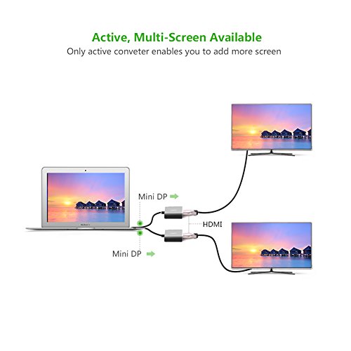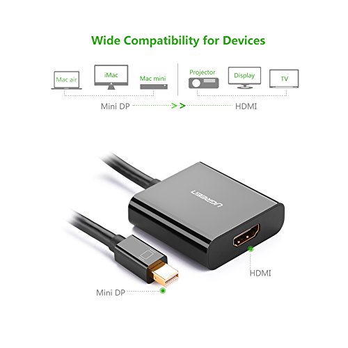 UGREEN Mini DP su HDMI Attivo, Active Mini Displayport Thunderbolt Compatibile su HDTV HDMI Maschio a Femmina Active Convertitore Adattatore, Mini Displayport su HDMI, Nero