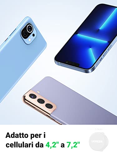 [ Compatibilità Universale ] UGREEN porta cellulare auto è compatibile con dispositivi con uno schermo da 4,7 a 7,2 pollici. È compatibile con iPhone 14/ 14 Pro/ 13/ 13 Pro/ 13 Pro Max/ 13mini/ 12/ 12 Pro/ 12 Pro Max/ 12 mini/ SE 2022/ 11/ XS/ XR, Galaxy A73/ A53/ A52/ A33/ S22/ S22 Ultra/ S21/ S21 Ultra/ S20, Huawei P50E/ P50 Pro/ P40/ P30/P30 Pro/ P30 lite/ nova 9/9 SE, Xiaomi 12/ 12 Pro/ 12X, Redmi K50/ K50 Pro/ Note11/11Pro, Oneplus 10Pro/ 9/ 9 Pro/ 9 RT/ 9R Nord 2/CE 2, ecc.