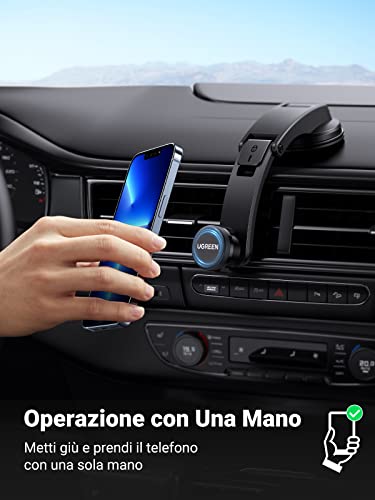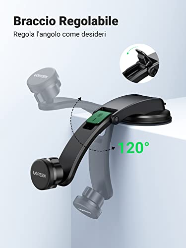 UGREEN Porta Cellulare Auto a Ventosa con Magnetico Potente per Cruscotto, Braccio Regolabile Compatibile con iPhone 14 13 12 Pro Max, Galaxy S22 S21 Note 20, ecc
