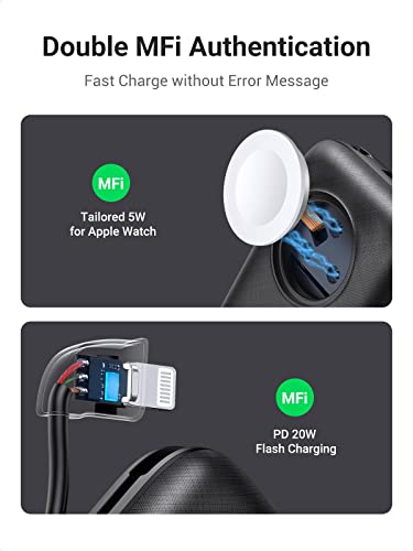 UGREEN Powerbank, Caricatore Wireless per iWatch [Certificato MFi] Caricabatterie Portatile 10000mAh con Cavo Lightning Integrato Compatibile con iWatch 8/7/6/SE/5/4/3/2, iPhone 14/13/12, Galaxy S22