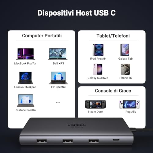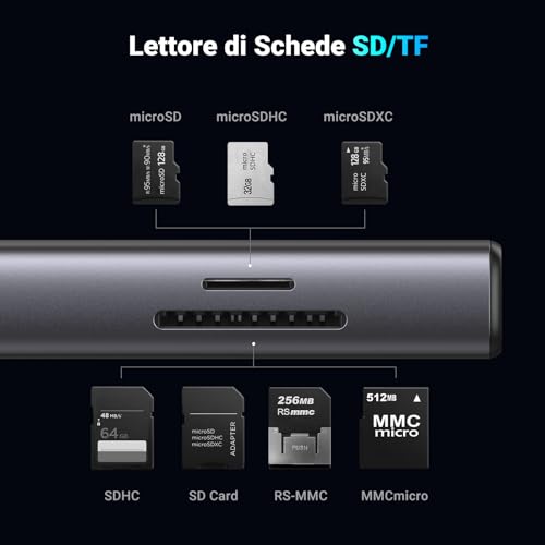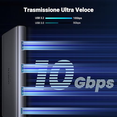 UGREEN Revodok Pro 109 Hub USB C 3.2 Gen 2 10Gbps HDMI 4K60Hz Ethernet RJ45 Adattatore USB C USB PD Carica 100W Lettore Schede SD TF Compatibile con MacBook Pro Air iPad Pro Air iPhone 15 Pro Surface