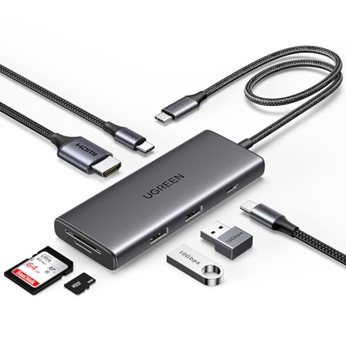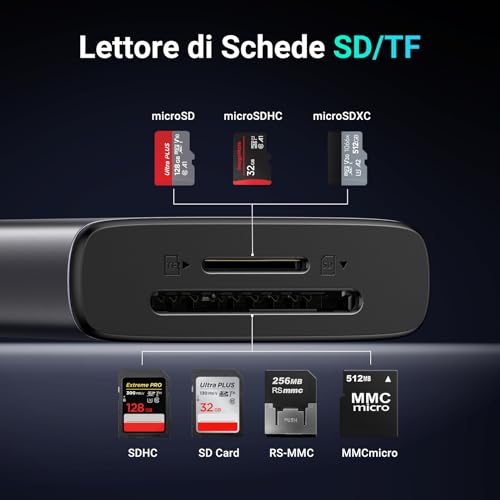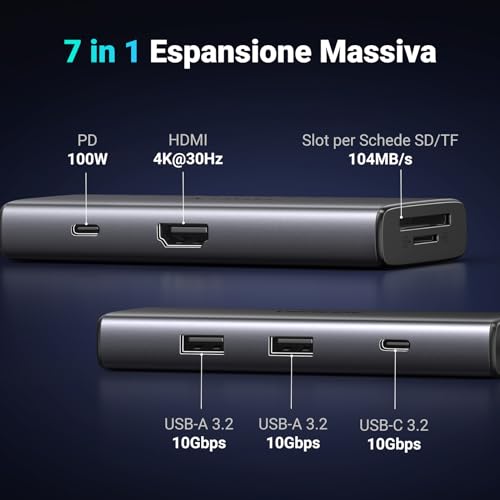 UGREEN Revodok Pro 107 Hub USB C HDMI Adattatore USB C USB 3.2 10Gbps PD 100W Lettore di Schede SD TF Compatibile con MacBook Pro Air M2 M1, iPad Pro Air, Galaxy S24 Plus Ultra, iPhone 15 Plus Pro Max