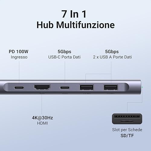 UGREEN Revodok Hub USB C HDMI Adattatore USB C a USB C e 2 USB A 3.0 Lettore Schede SD TF Carica PD 100W Compatibile con MacBook Pro Air M2 M1, iPad Pro, Galaxy S24 Plus Ultra, iPhone 15 Plus Pro Max