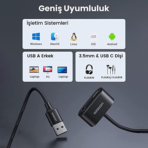 UGREEN Scheda Audio Esterna USB, Adattatore Audio 2 in 1 per Windows, Mac, Linux, Adattatore USB a Jack 3,5 mm e USB C Compatible con PC, Laptop, PS4/PS5 ecc