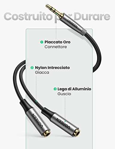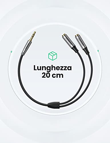 UGREEN Sdoppiatore Cuffie Doppio Jack Audio in Nylon, Splitter Jack 3,5 mm Maschio a 2 Femmina, Splitter Adattatore per Smartphone, Tablet, iPad, Cuffia, MP3/4, PC, 20cm
