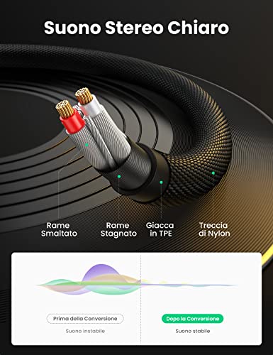 [ Piccolo & Portatile ] UGREEN lunghezza del cavo audio è di 20 cm, Il doppio jack è piccolo e portatile. Può essere messo in tasca e nella borsa della scuola sempre e ovunque.