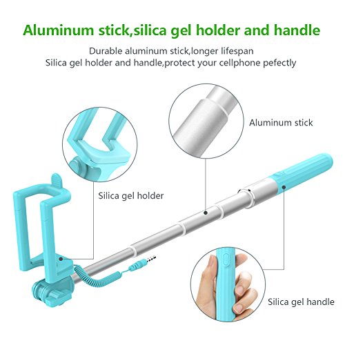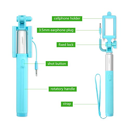 UGREEN Self Stick Bastone Selfie Cavo Asta per Selfie Autoscatto Filo per Iphone 6s 6 Plus, Samsung Galaxy S7 S6 Edge S5 S4 S3 Note, Huawei, Nexus, Gopro, Htc, Azzurro