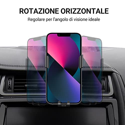 Porta Cellulare Per Gravità: Quando il telefono viene inserito, il meccanismo di gravità interno sarà attivato e approfitta i tre bracci retrattili per bloccare il telefono in modo sicuro, non c'è nessun rischio di caduta per tutte le condizioni stradali difficili, come rampa di decelerazione, frenata improvvisa o sentiero accidentato. Invece, quando viene sollevato il telefono, i tre bracci si rilasciano automaticamente per aiutare a togliere il telefono in modo più facile.