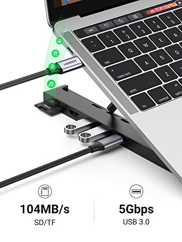 UGREEN Supporto per computer portatile X-KIT, USB-C, 2xUSB 3.0, 4K HDMI, SD/TF (nero)