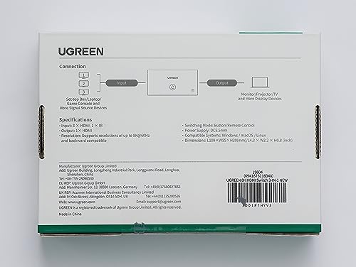 UGREEN Switch HDMI 2.1 8K 60Hz 4K 120Hz Switcher HDMI 3 in 1 out 1080P Dolby Vision Atmos HDR 3D 48Gbps compatibile con PC PS5 PS4 Xbox One 360 DVD TV Box Stick Proiettore
