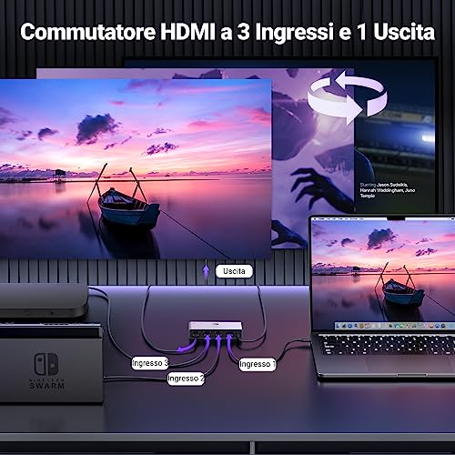 [ Progettato per i giocatori ] Lo switch HDMI supporta la qualità 4K nativa e l'elevata frequenza di aggiornamento fino a 120 Hz, eliminando virtualmente il ritardo e il motion blur, per un'esperienza di gioco fluida come la seta.