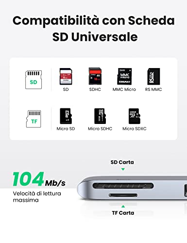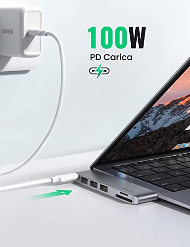 UGREEN Hub USB C Thunderbolt 7-in-2, Thunderbolt 3 Supporta 6K Video/ PD100W/ 40Gbps, Lettore di Schede SD/TF, 3 USB 3.0, in Alluminio Compatibile con MacBook Air/Pro M1 M2 2023 2022
