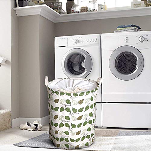 UHAPEER - Cesto portabiancheria Grande (45 cm), Pieghevole, con Chiusura con Coulisse, Impermeabile, Rotondo, con Fodera in Cotone Leaf