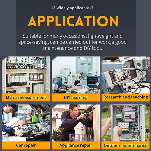 [Facile da trasportare] Questa dimensione portatile dell'oscilloscopio è 99x68.3x19,5 mm, leggera e facile da trasportare.Può essere utilizzato direttamente ed evita problemi di assemblaggio e saldatura.Questo oscilloscopio è adatto al settore della manutenzione, soddisfacendo le esigenze di test quotidiane.