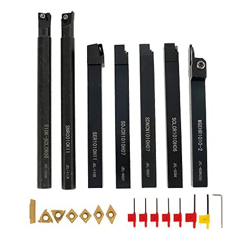UHLSNHK Set di Utensili di tornitura CNC 22 Pezzi con Inserti in Carburo Inserto in Carburo Multifunzione con Chiave Tornio A Punta Che Tinge Il Barra(Uno)