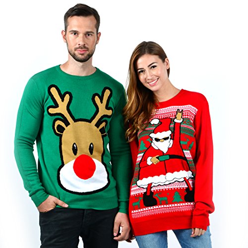 Uideazone Donna Uomo Moda Natale Babbo Natale Stampa Maglioni Maglioni Camicie Rosso Medio