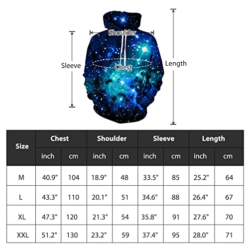 Uideazone Felpa con Cappuccio da Donna 3D Blu Galaxy Felpa con Cappuccio a Maniche Lunghe Pullover Unisex Felpa con Cappuccio con Tasche XL