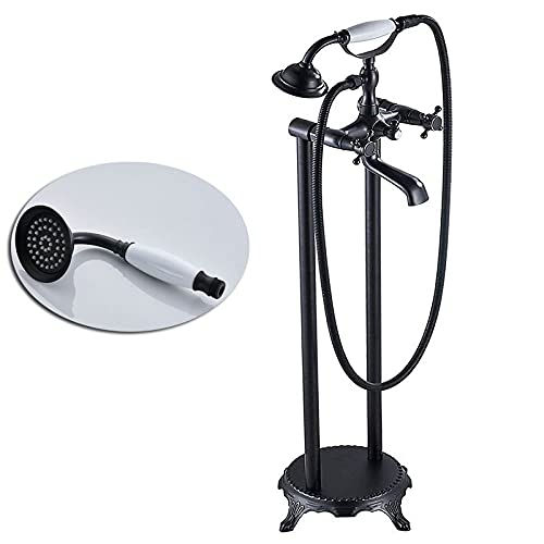 UIEMMY Rubinetto per Vasca da Bagno a Pavimento con Doppia Maniglia, Montaggio a Pavimento, Rubinetto per Vasca da Bagno Indipendente, Ottone Antico con doccetta, beccuccio Girevole, Bronzo Nero B