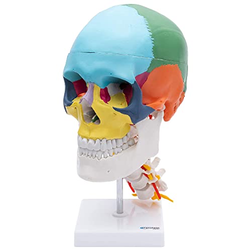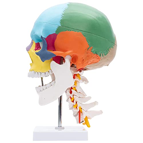 UIGJIOG Cranio Rimovibile 4 Pezzi Vertebra Cervicale Modello Educativo Cranio Umano Modello Anatomico Medico, Partizione A Colori Identifica Collezione Medica Modello Cranio Flessibile E Rimovibile