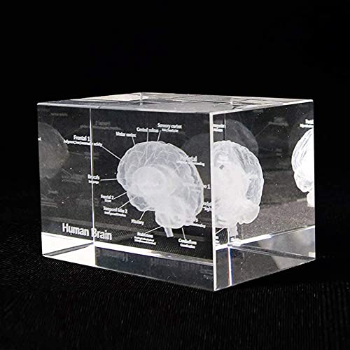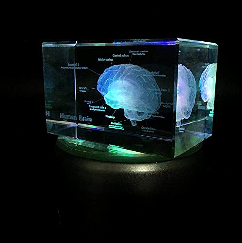 UIGJIOG Cristallo Anatomia del Cervello Umano Modello anatomico 3D fermacarte (Laser Etched) Scienza Regalo Cube Medica ricordo con LED Base,8 * 8 * 15cm