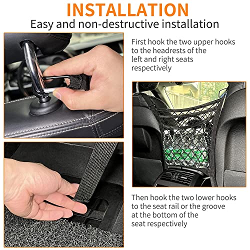 【FACILE DA INSTALLARE】: il nostro rete portaoggetti auto Sedile è molto facile e veloce da installare. Basta attaccare i ganci superiori a destra e a sinistra delle aste del poggiatesta e i ganci inferiori sul fondo del sedile di ciascun rispettivo lato. La robusta struttura in rete leggera di questo spazio per auto tra gli organizzatori del sedile li rende facili da riporre.