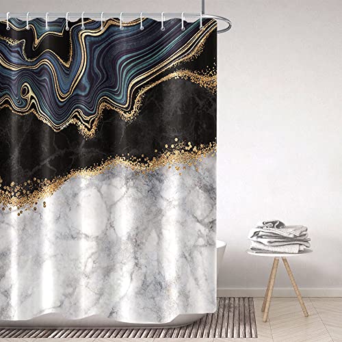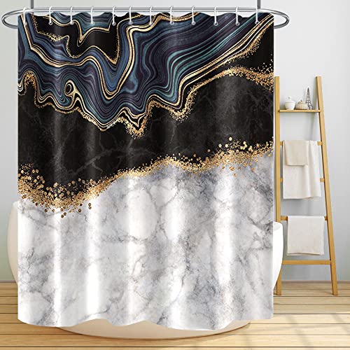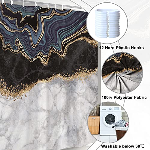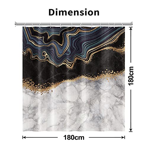 Uiiooazy Marmo Tenda da Doccia Astratto Nero Grigio Moderno Impermeabile Antimuffa Lavabile Tende per Doccia in Tessuto Poliestere Tende Bagno con Ganci 180 x 180 cm
