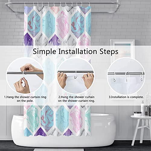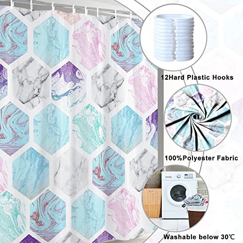 Uiiooazy Tenda Doccia Effetto Marmo, Tenda da Doccia Blu Rosa Geometrico Tenda per Doccia Antimuffa Impermeabile Tessuto in Poliestere Lavable Opaca Tenda per Vasca da Bagno con 12 Ganci 180Lx180Acm
