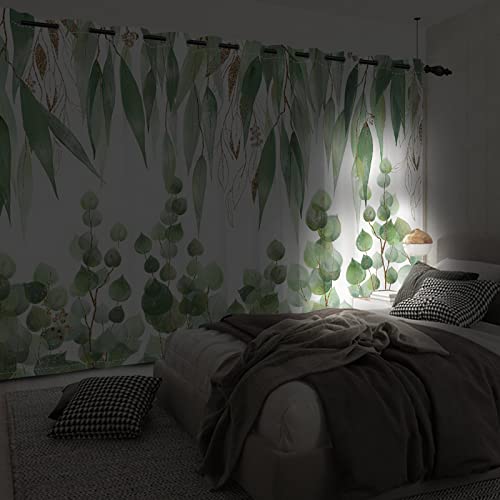 Uiiooazy Tenda Eucalipto, Tenda Oscuranti Foglie Verde Pianta Motivo Tende Termica Isolante Freddo con Occhielli per Camera da Letto Interni Finestra Soggiorno, Due Pannelli Set, 140x175cm