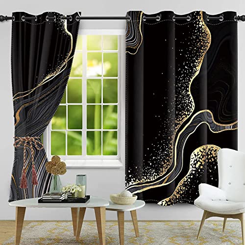 Uiiooazy Tenda Marmo, Tenda Oscuranti Astratta Arte Nero Oro Moderna Tende Termica Isolante Freddo con Occhielli per Camera da Letto Interni Finestra Soggiorno, Due Pannelli Set, 140x260cm