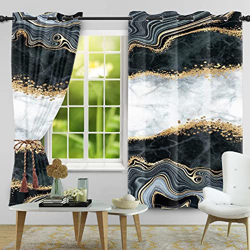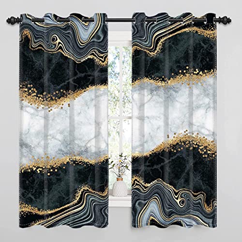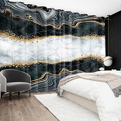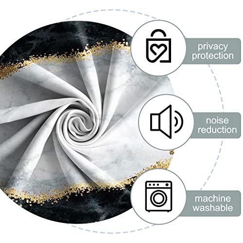 Uiiooazy Tenda Nero Grigio, Tenda Oscuranti Astratta Oro Marmo Effetto Tende Termica Isolante Freddo con Occhielli per Camera da Letto Interni Finestra Soggiorno, Due Pannelli Set, 140x245cm