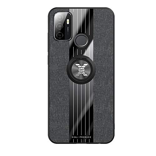 UILY Custodia Compatibile per Oppo A53s, Tela Tessuta Moda + Cover in TPU Morbido, Conchiglia Anti-Caduta con Anello Metallo Supporto. Nero