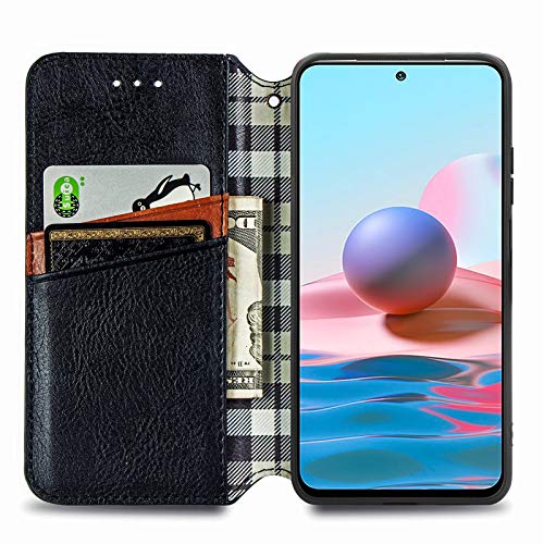 UILY Custodia Compatibile per Xiaomi Redmi Note 10S, Cover Portafoglio Business Flip Ultrasottile Moda, Funzione Magnetica Anti-Caduta Staffa Conchiglia. Nero