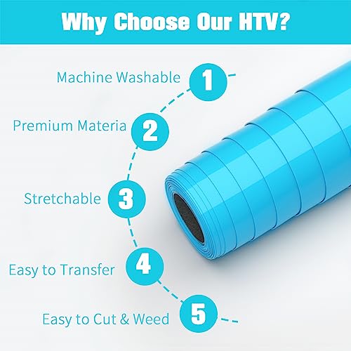 UIOK Vinile Termoadesivo per Tessuti, 30.5 x 365.7cm Vinile Termoadesivo Blu Termovinile per Tessuti, HTV Vinile Termico per T-shirt, Altri Tessuti, Facile Da Tagliare (Blu)