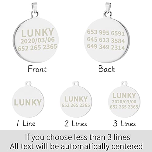 Incisione su Entrambi i Lati: Targhetta per animali dall'aspetto solido con molto spazio per incidere nome, numero di telefono e indirizzo e le lettere sono molto chiare. Puoi scegliere di avere il suo nome e il tuo numero di cellulare sul davanti, con il tuo nome, indirizzo e codice postale sul retro. La stampa laser rende la scritta ben visibile e di facile lettura.
