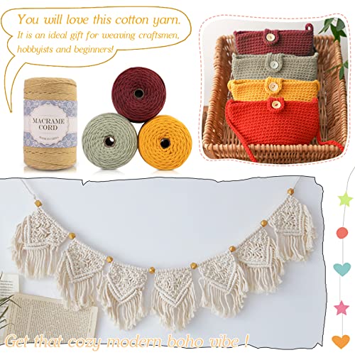 Corda di Cotone Naturale: La corda per l'artigianato è realizzata in filato di cotone naturale, morbido al tatto, robusto e resistente. Buon colore e spessore, facili da creare progetti macramè.