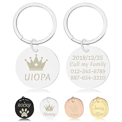 Uiopa Medaglietta Cane Personalizzata con Incisione, Medaglietta Gatto Forma di Tondo,Targhette Identificative per Animali Domestici Personalizzate con Portachiavi per Collare di Cane Gatt