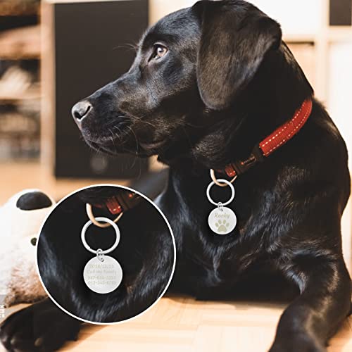 Incisione su Entrambi I Lati: Sulla targhetta medaglietta è possibile lasciare fino a 5 righe di informazioni personalizzate, come nome dell'animale domestico, numero di telefono e indirizzo, 1 riga sul davanti e 4 righe sul retro;