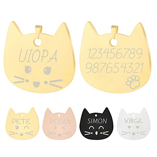 Regalo per i Tuoi Animali Domestici: La targhetta con il nome del collare del gatto ha un bellissimo design a testa di gatto, un'incisione personalizzata dell'espressione, sembra adorabile sul collare del gatto in modo molto chiaro. Perfetto per il tuo gatto, cane, animale domestico. L'etichetta personalizzata può essere utilizzata anche per zaini, zaini o bagagli per evitare perdite.