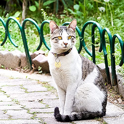 Dimensioni Ideali per i Gatti: S - 2 x 2,5 cm / 0,78 x 1 pollice, L - 2,5 x 3,2 cm / 1 x 1,25 pollici, spazio sufficiente per nome, numero di telefono e indirizzo. Con uno spessore di 1,8 mm, la targhetta per collare per gatti ispessente ha una durata maggiore.